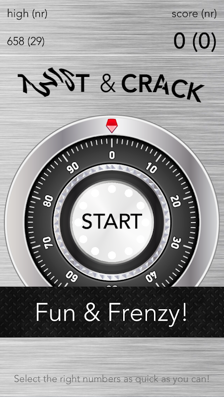 Crack the code by twisting the big knob to the right numbers (and release when you have selected the number). But be fast!