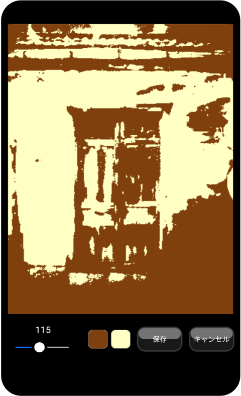 写真を撮ると自動的に2色のイメージに変換されます。