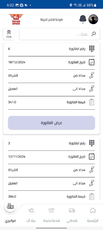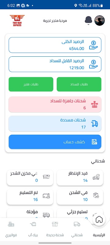 Through the customer interface, through the application, he can add shipments, follow up on his shipments, their status, the shipment itinerary, and follow up on his balances and accounts.