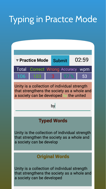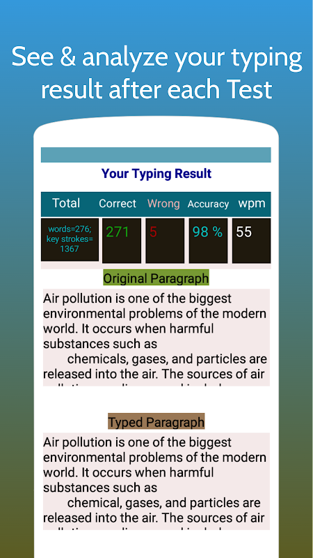 An easy to use typing test app for boosting typing speed for various exams.