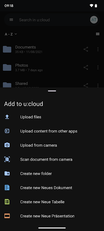 • upload of files to u:cloud