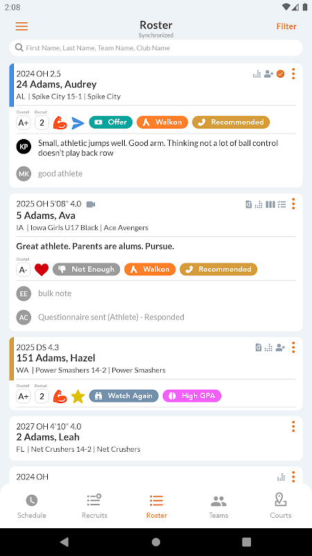 University Athlete 2025 (UA 2025) is a tool for college volleyball coaches to track and evaluate athletes, primarily at events. The application mirrors the design and all functions available in the University Athlete web platform for college coaches.
