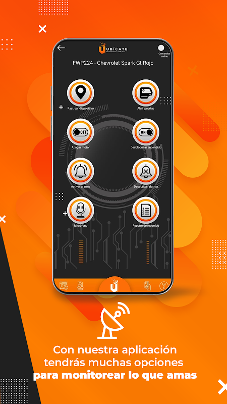 With Ubicate GPS you can also track your vehicle, turn it off remotely, receive alerts for the opening of the switch or key, opening of doors, knocks, speeding, entry / exit of geofences among many other options.