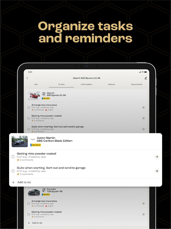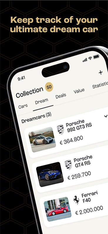 A great way to manage your cars. The ultimate overview of the beauties you own. The value of your collection based on real-time data. A car maintenance to-do list. Access point to exclusive services like washing, transportation and modifications. Etcetera. Push the button and check it yourself.