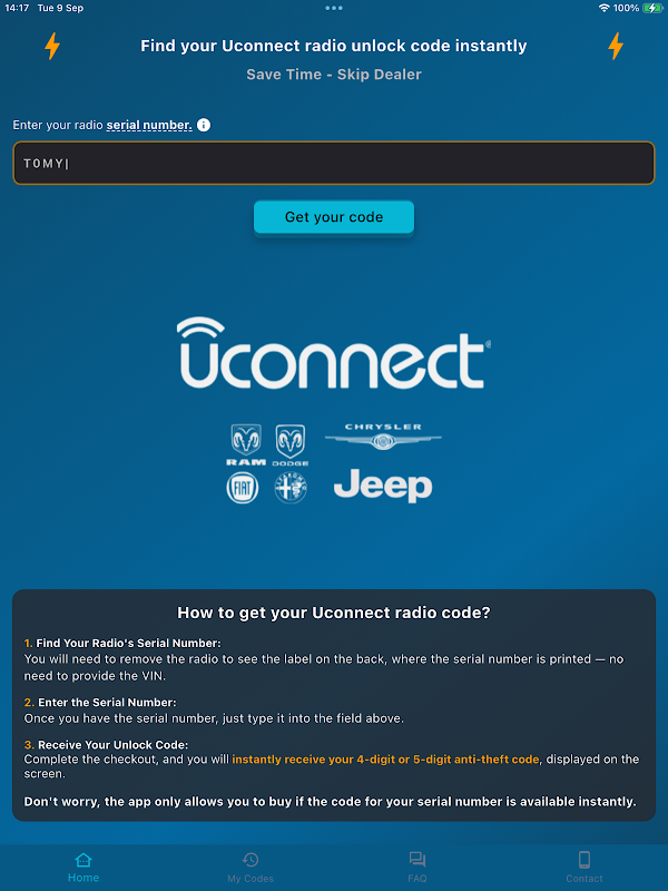 Uconnect Radio Code Instant 1.0.0