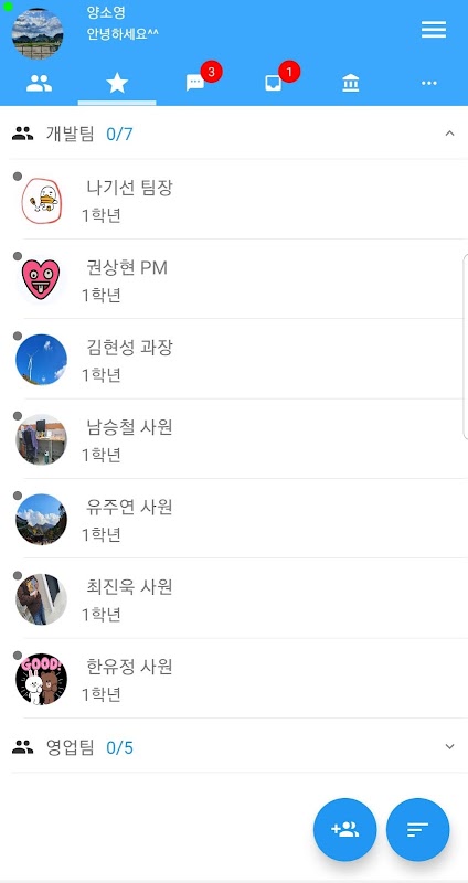 *즐겨찾기 - 업무 상 교류가 많은 사용자들을 즐겨찾기에 등록하고 한눈에 확인할 수 있습니다.