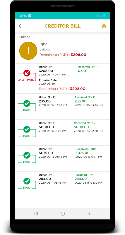 Stay connected with your creditors without missing any invoice or udhar promised date. This app will make your Udhar Khata process easy, convenient, and certain.