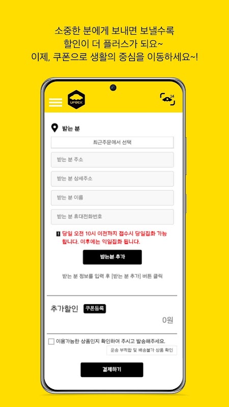 택배예약과 배송상태를 바로 확인할 수 있는 생활 밀착형 컨시저이 방문택배집화서비스입니다. 모두의 생활 속에서 어플 하나로 [가입, 택배예약, 방문픽업, 예약확인] 편리하게 사용하세요!