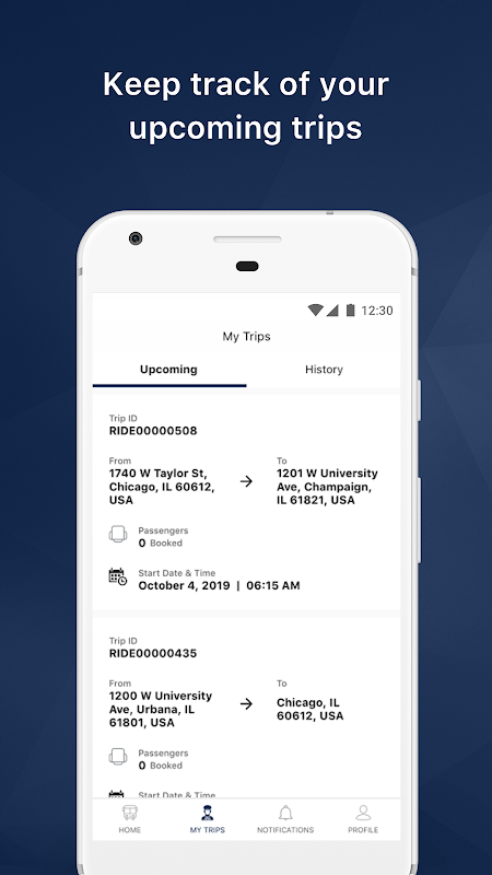 UI Ride application allows faculty/staff and students of the University of Illinois to book rides on UI Ride service operated by Facilities and Services. Currently UI Ride service is not open to public.