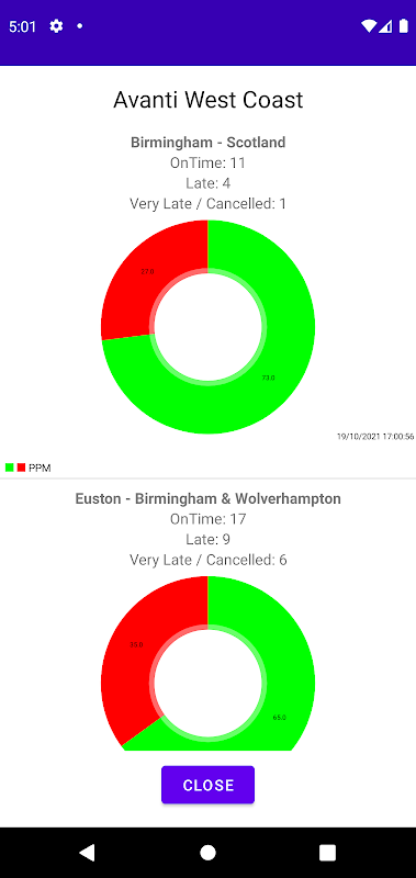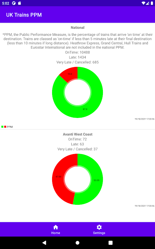 The public performance measure (PPM) measures the performance of individual trains advertised as passenger services against their planned timetable as agreed between the operator and Network Rail at 22:00 the night before. PPM is therefore the percentage of trains 'on time' compared to the total number of trains planned.