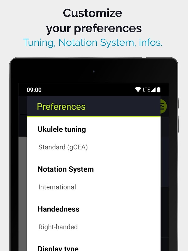 ✓ Custom charts display: Notes, intervals or fingerings