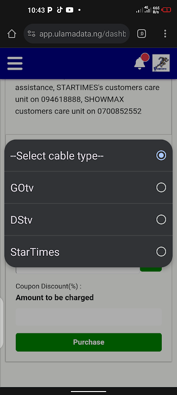 ULAMADATA is a Registered Telecommunication Company that offers the transmission of Data VTU for all Networks Cable Tv SUBSCRIPTION and Bills payment Exam Result checkers Token Airtime Pin.