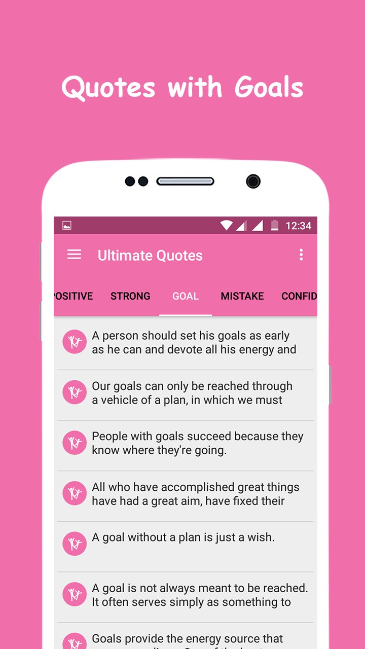 Ultimate Quotes app is a collection of over 50000+ carefully hand picked quotes from more than 250 people. It contains sayings from philosophers, writers, spiritual thinkers and other great minds whose brilliant words inspired many human beings. See it for yourself, download it now and get inspired every day!