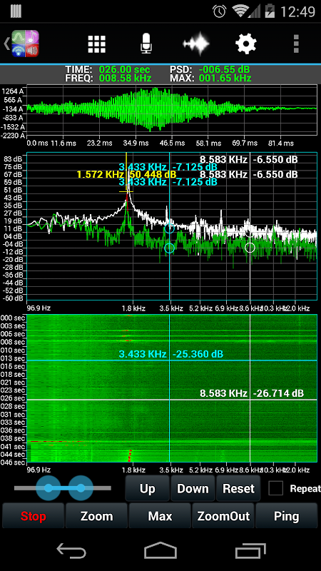 UltimateAudio Pro is an app that specialized in analyzing the science of sounds. The most advanced sound analyzer available. The app act as a RTA and spectrum analyzer and tone generator. This app combine all my other sound apps into one. What you will get are Spectrum, ActivePinger, ISpectral, Signal Generator, Audio TCP and IGram. If you are an engineer professional, engineering students, oceanographer, bird watching enthusiast, musician, pianist, guitar and speaker tuning, or interested in signal processing.