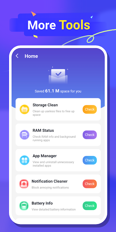 1. Redundant File Cleanup: Quickly scan and find unnecessary files such as APK files, temp files, and log files. With just a few taps, you can remove these files to release space.