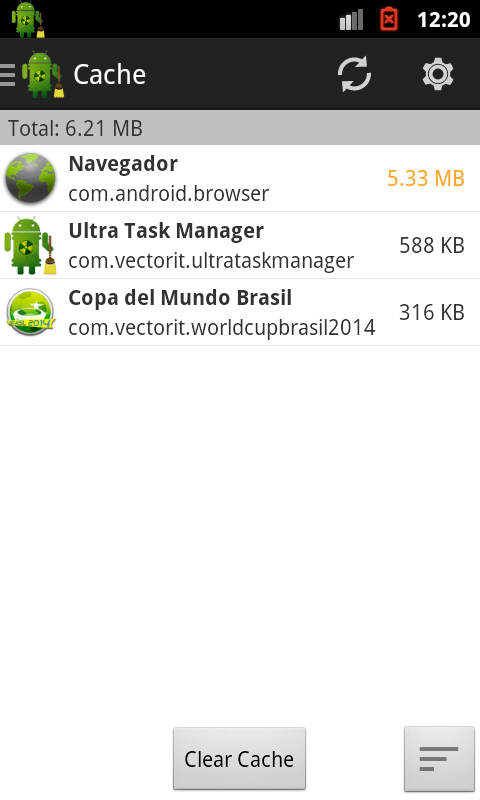 Ultra Task Manager shows all the apps that have cache files and allows you to clean all these files, freeing up the internal phone storage.