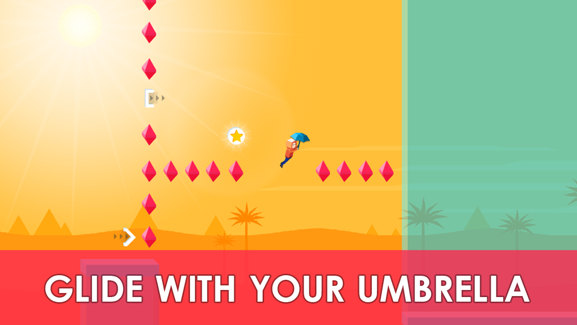 ★ Simple gameplay; tap to jump across platforms, and double-tap to glide with your umbrella