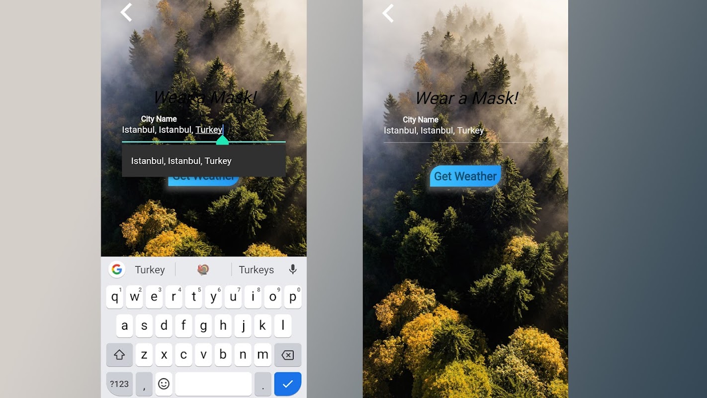 Check live weather in your location just by tapping the location icon. Find the weather of all cities in the world by navigating to the city search page just by tapping in the search icon. Customized search suggestions for city is available.