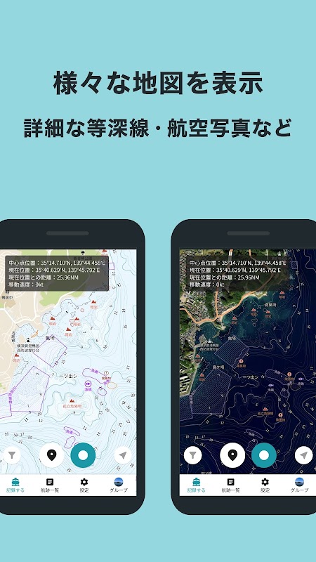 By displaying contour lines and aerial photographs, you can grasp the position at sea. Since the data can be downloaded in advance, the current location can be grasped even if the radio wave does not reach.