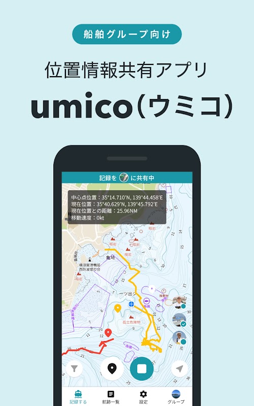 umico is a GPS plotter for smartphone apps developed mainly for fishermen and small vessels. You can keep track of yourself at sea, record tracks and points in the cloud, and share them within a group if needed.
