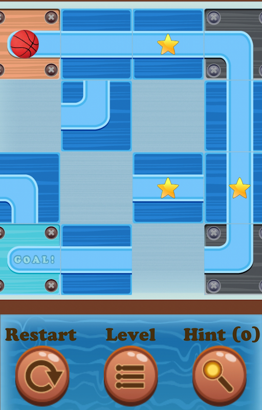►Slide tiles to create a connecting path for the ball to roll to the goal.