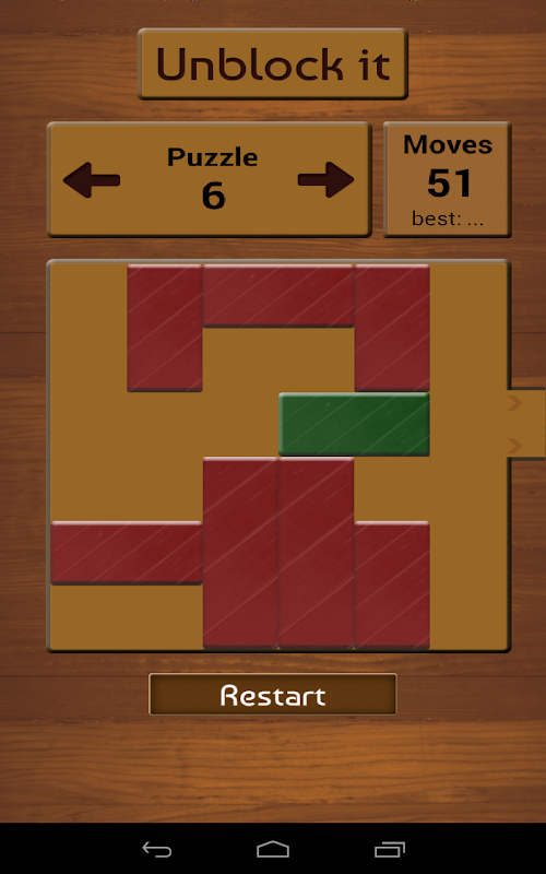 Unblock it! comes with 10000+ puzzles. You can switch between puzzles using arrows on the screen.
