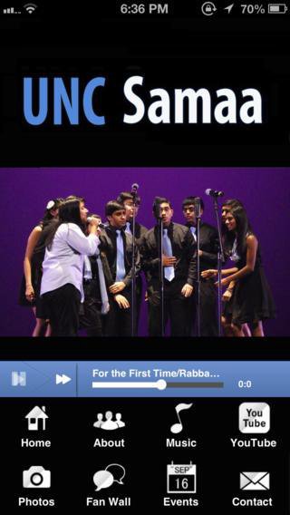 Samaa is a co-ed South Asian A Capella group from the University of North Carolina at Chapel Hill. With our app, we hope to share our music to a broader audience by making it more accessible. It offers our latest music clips, performance videos, team pictures, member biographies, and upcoming performance dates all on a user-friendly easy access application. Hope you enjoy and make sure to leave us a post on the fan wall!