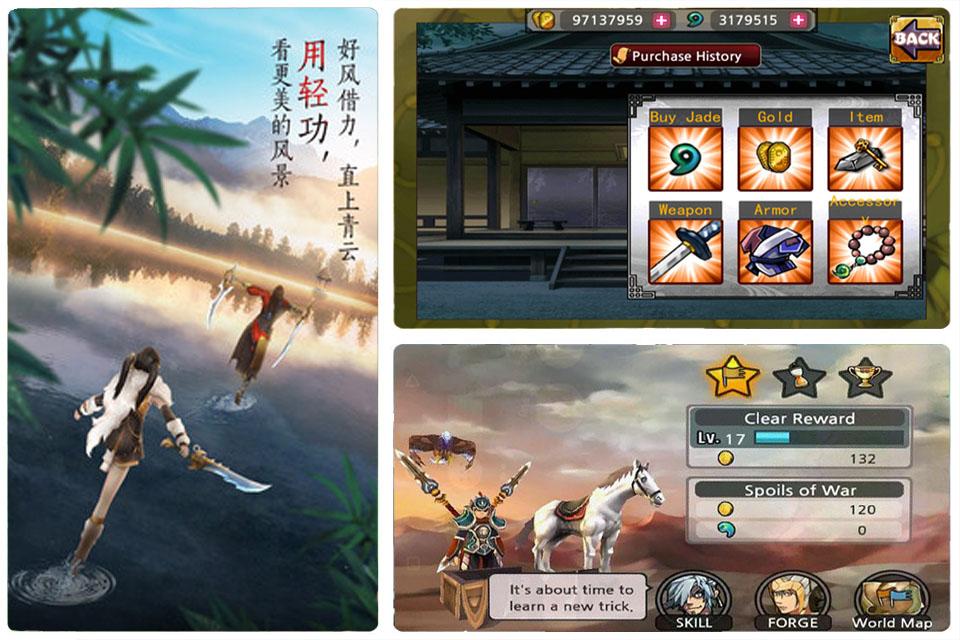 Collect Gold and Jade, you can use Jade to buy nice sword, weapons and costume in the game. Be brave, hero always win!