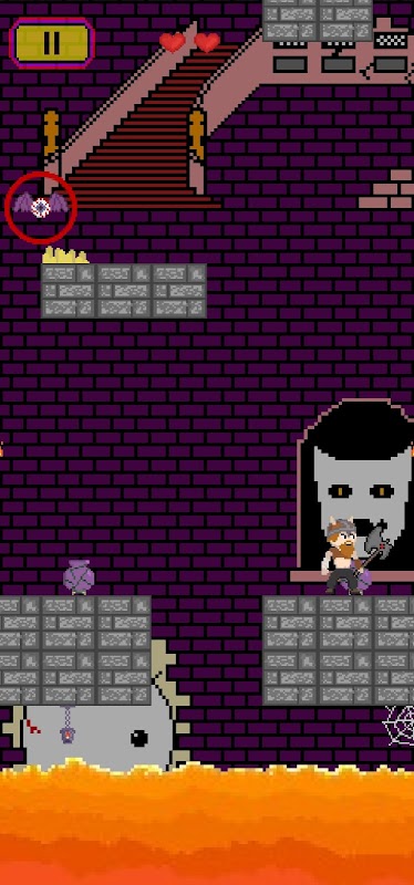 vikingo intenta recuperar su corona peleando contra esqueletos evitando la lava
