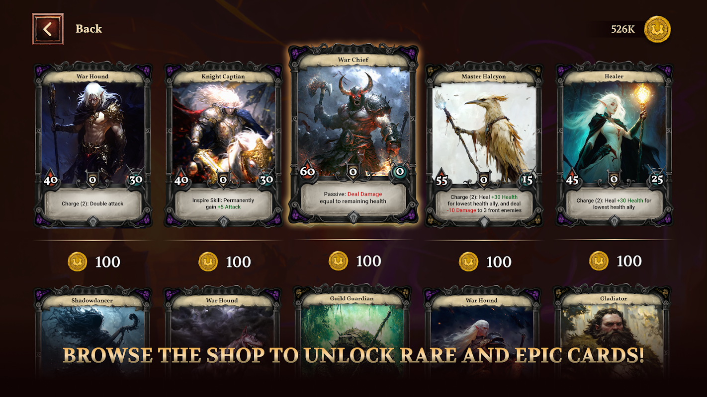 • Hero Cards – Powerful units with distinct stats and abilities