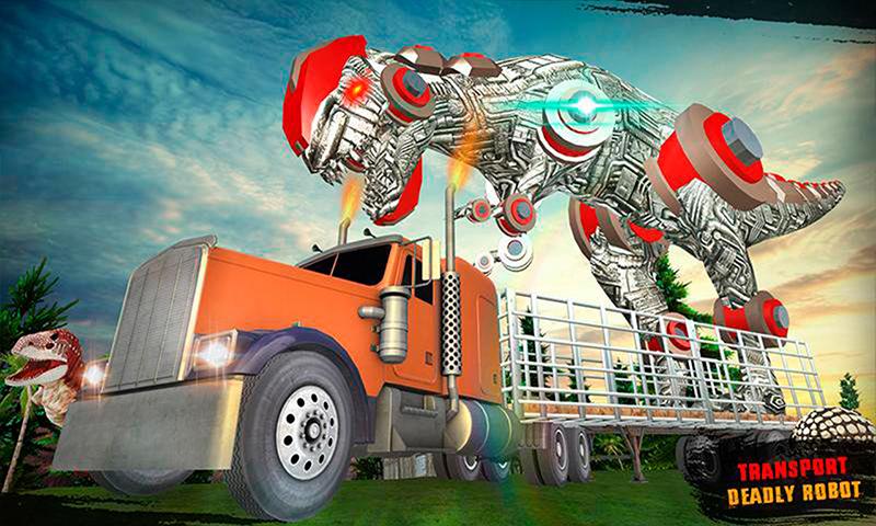 Double the fun of future dinosaur robot transport game with truck transportation. Transporter truck is loaded with futuristic dino robot transform; drive truck to sea port for ultimate transport adventure. Driving angry dino transport truck loaded with future transform dinosaur robot is a challenging mission. Maneuver truck carefully & transport robot transformation of tyrannosaurus and stegosaurus. Become the real super dinosaur robot transporter and drive metallic dinosaurs to futuristic zoo. Show your offroad truck driving skills with thrilling dino transform robot simulator. Become the best transporter truck driver in this wild dinosaur truck simulation game.