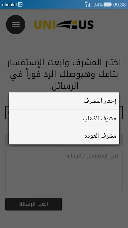 7- للوصول لأعلى مستوى من الخدمة عملنالكوا قسم للاقتراحات والشكاوي القسم ده بيوصل لل Admin بس الل هو احنا يعني تقدر لو انت ف اي باص وحصل أي مشكله تفتح الابليكيشن و تكتب شكوتك سواء من باص أو سواق أو مشرف لا قدر الله او حتى مشترك يعني كده احنا بنضمنلك ان أي مشكله تحصل معاك توصلنا و نحلها ان شاء الله .. و كمان موجود في الابليكيشن بيانات عن الباصات بتاعتنا ولونهم و ارقام السواقين لسهولة التواصل.