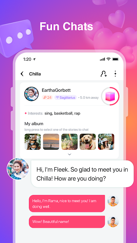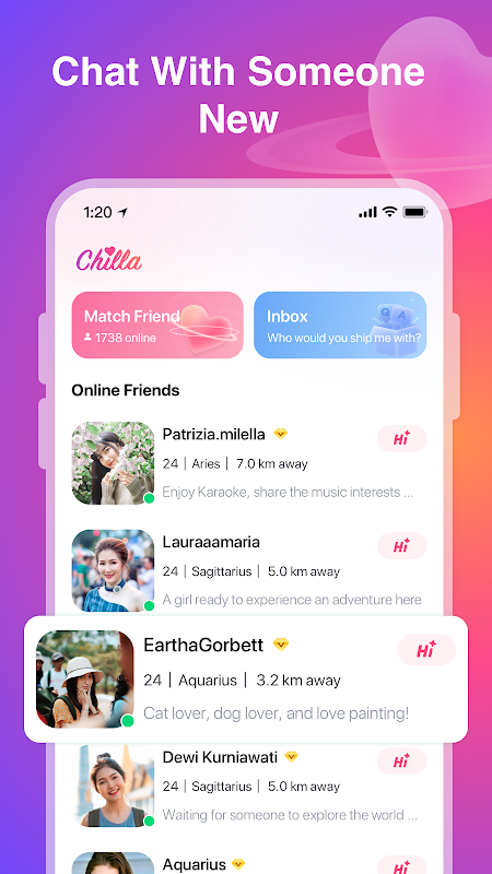 Whether you're looking to meet new friends or chat casually, Chilla is committed to providing the most relaxing and enjoyable chatting experience. With millions of users online 24/7, it's easy to find like-minded people efficiently and start chatting and building relationships for free anytime!