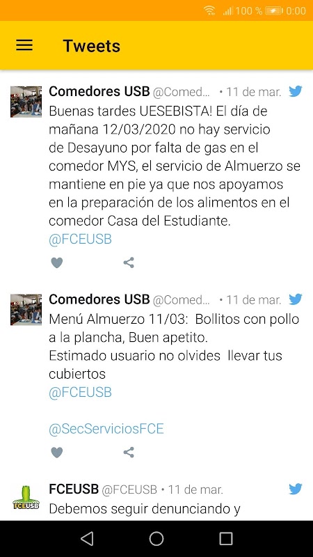 - Tweets: You can be up to date of the most important information displayed by the official Twitter accounts of the Universidad SImón Bolívar.