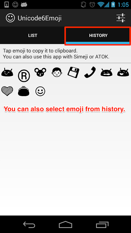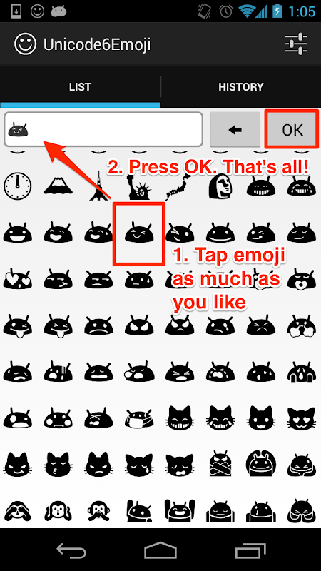 (Android 4.1(Jelly Bean) or later, we can use the Unicode 6.0 Emoji.)