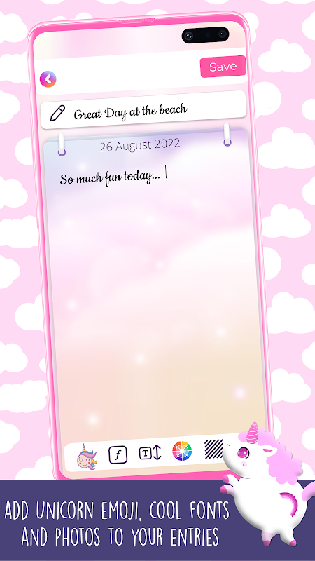 🦄 Hello there, all you ever wanted in a cute diary app is here! Download “Unicorn Diary With Lock” and share your secrets, ideas, and dreams! Forget about ordinary “secret diary” apps, get the newest journaling app free and customize your “private journal” as you wish! Set up a background you like and save your locked notes in the cute diary with fingerprint lock! The best friend that will not disappoint you, the mini note photo journal! Whatever it is that is troubling you, you can write it down in a daily diary journal with private notes. Write as many entries and aesthetic notes as you wish in this adorable digital journal, as it won't give away your secrets. Think of a pin, pattern or leave a fingerprint as a lock. You can always count on your cute journal notebook to lend you an ear! It's “my secret diary with password” that will inspire you to write about all your special moments. Install this writing journal for free, write about your secret love, things that scare you, things that bring you joy... Download the cutest daily journal free today!