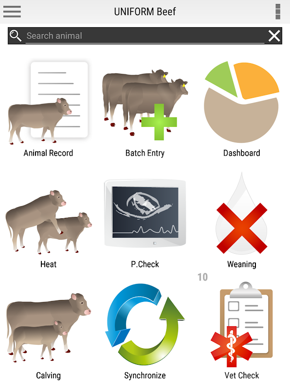 UNIFORM Beef-App is the application for mobile use of the UNIFORM-Agri Beef herd management software. This easy to use app has a "Farmer Finger"-interface, large buttons that are easy to use for farmers.