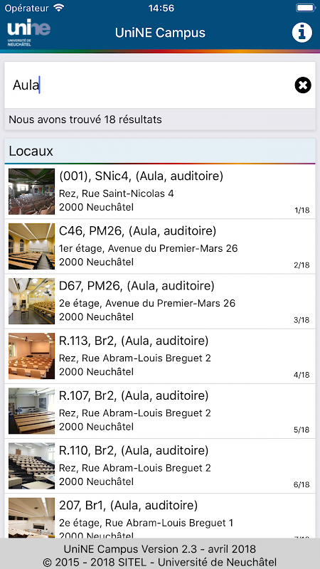 "UniNE Campus" allows search and location on a map of a person to an organizational unit, event and course
