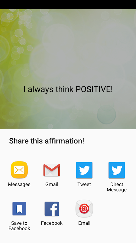 Hold down the green button to reveal your daily affirmation and effectively use the app by repeating the statement out loud. Saying the affirmation in front of a mirror is even better. It's been scientifically proven that the more stimuli your mind has, the more your mind will retain the information. By vocalizing in front of a mirror, you stimulate sight and sound.