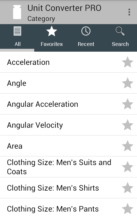 The Aevumsoft Unit Converter PRO is both user-friendly and powerful. It contains 2000+ units in 90 categories. All these units and categories are conveniently accessible through an easy-to-use, professional user interface which has been optimized for both phones and tablets.