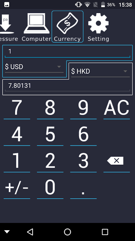 Provides common unit and currency conversion. Simple and easy-to-use interface.