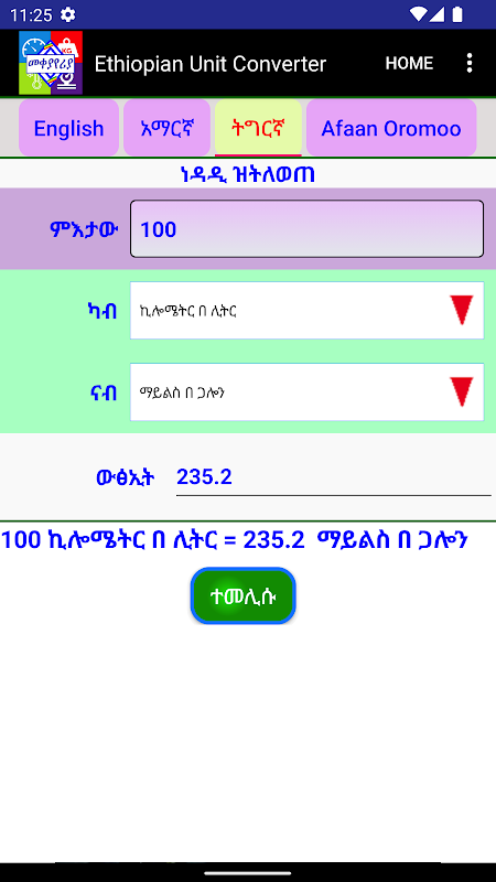 To convert units from one to another using 3 different Ethiopian languages.
