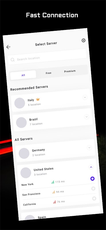 • Optimized servers for all countries