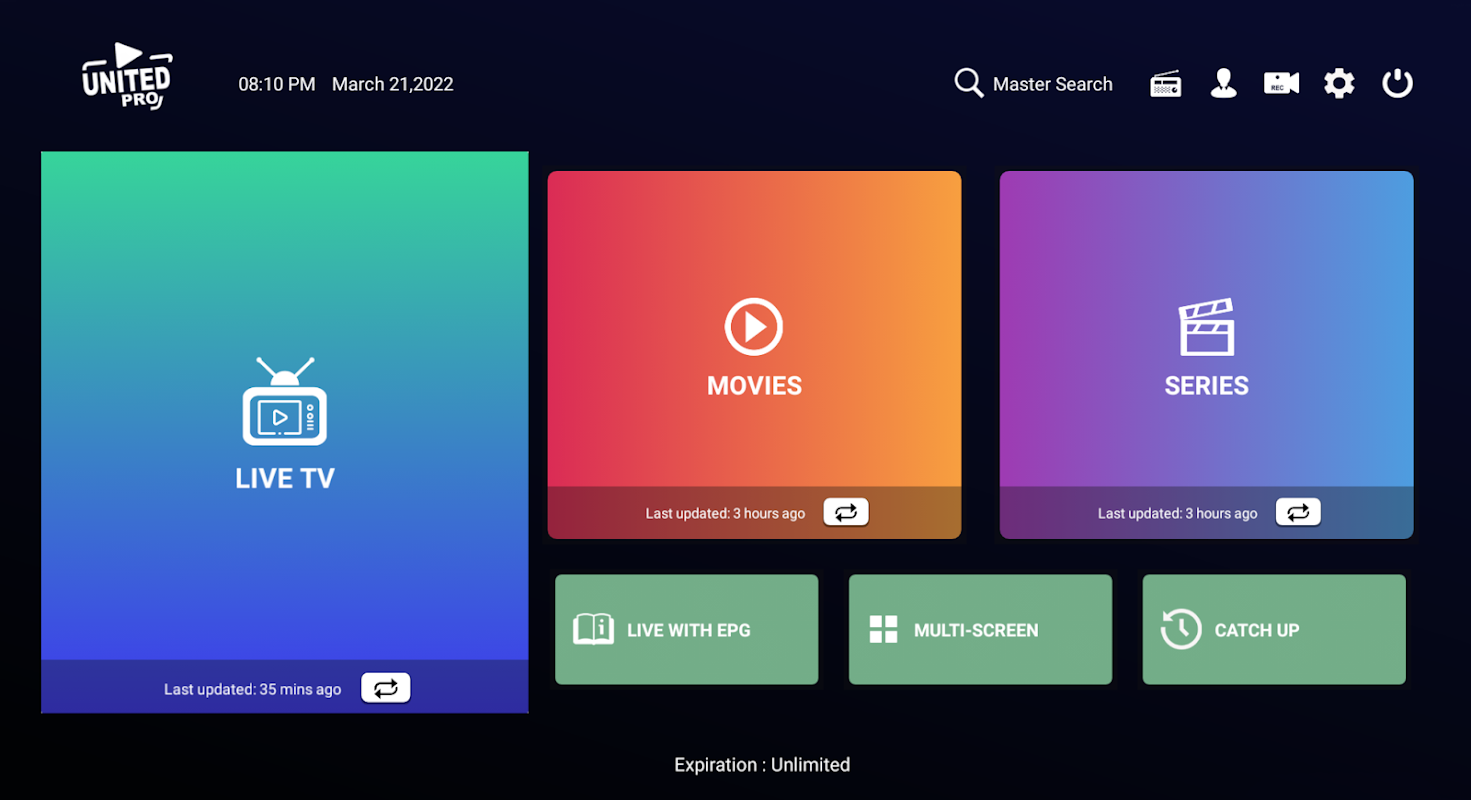 With United Pro you can watch Live, Movies, Series, and TV Catup from IPTV