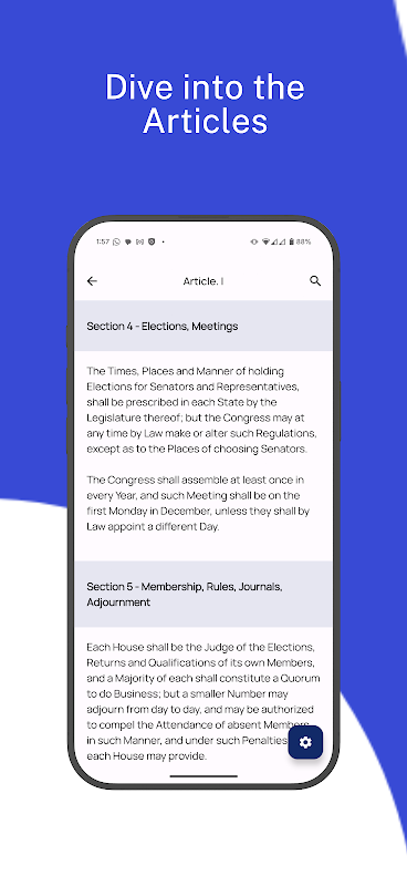 Delve into the complexities of the United States Constitution with our intuitive and user-friendly app. Explore the complete text, effortlessly search for specific content, and enjoy the convenience of offline access. Whether you're a dedicated student immersing yourself in constitutional law or a seasoned legal professional, this app serves as an indispensable, pocket-sized guide to the foundational principles that govern the United States.