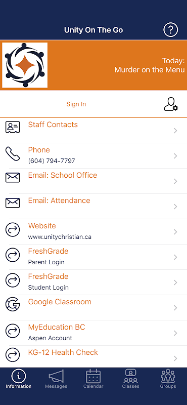 This is the official Unity Christian School mobile app.