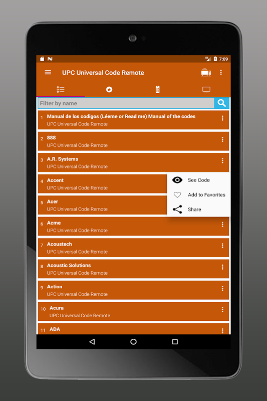 The codes of the remote controller of your UPC Universal this app allows you to quickly select thousands of codes from TV manufacturers so that you can configure your control or (Control) for television. Code of universal controllers of UPC , Code of universal controllers for UPC