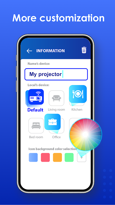The free universal projector control app will replace the physical remote, in case the battery runs out or the remote is damaged.