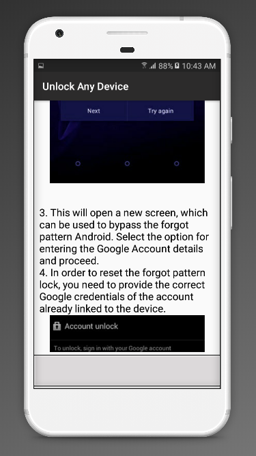 Unlock any Android Mobile Techniques 2021 to secure data or preventing unauthorized use of data. One method to protect your phone data is to lock your phone screen by pattern, pin or in other way like face recognition or fingerprint. This app provide to solution to problems of device locking or unlocking.