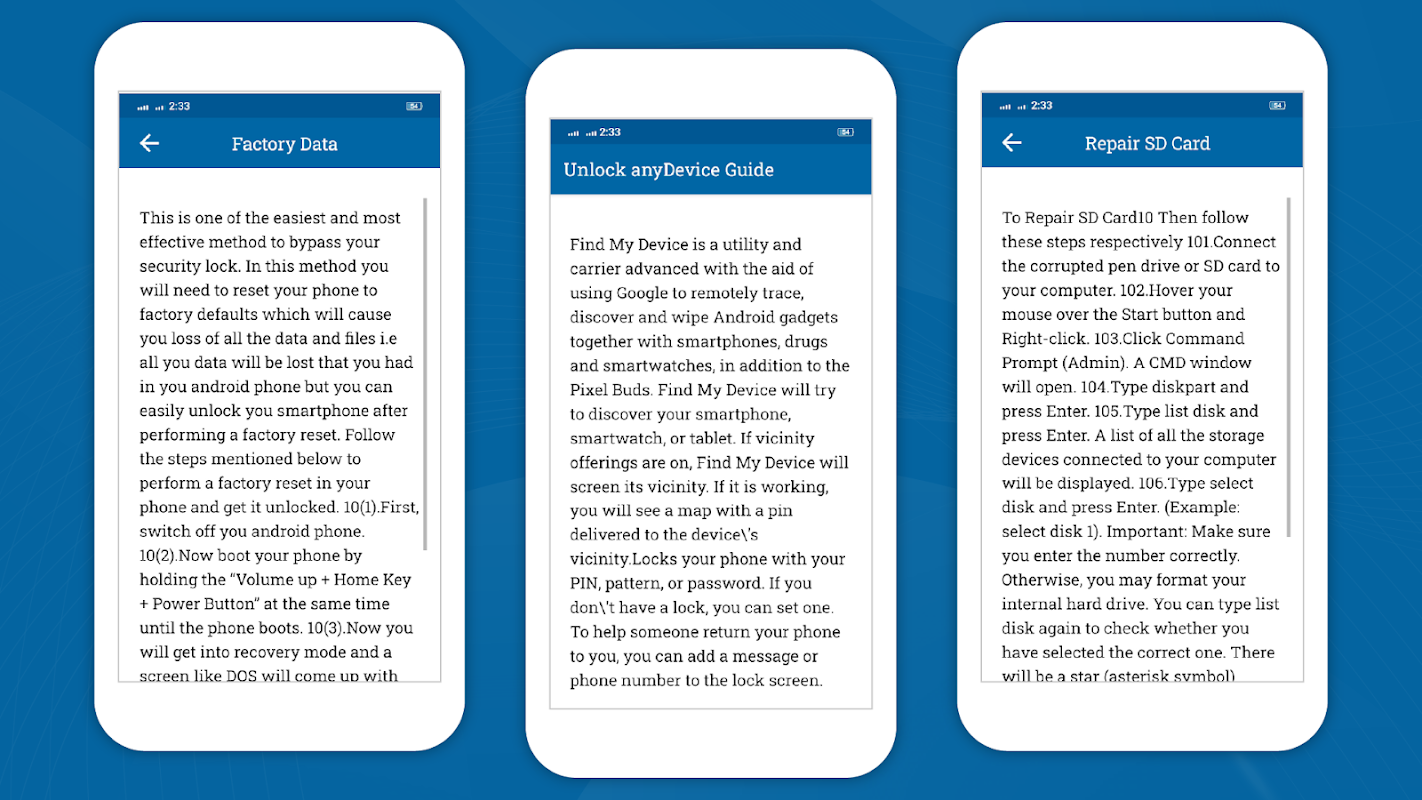 Whether you need to Unlock any Device Method and Phone Passcode Removal or any other device, we've got you covered! Fast factory resets, battery optimization tips, and the latest reset codes - all at your fingertips. Download now for a hassle-free Mobile Password Unlock Guide and Remove Pattern Lock experience!